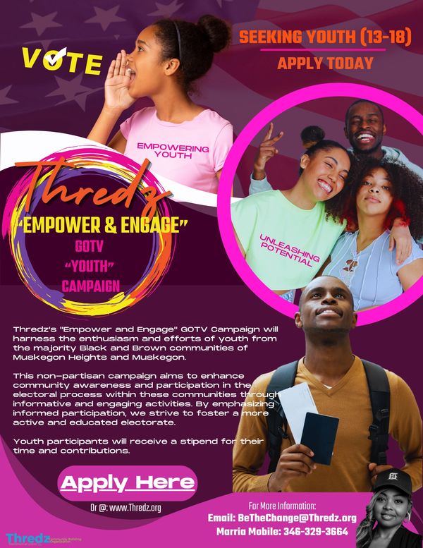 Thredz "Empower and Engage,” GOTV Youth Campaign will harness the enthusiasm and efforts of youth from the majority Black and Brown communities of Muskegon Heights and Muskegon.